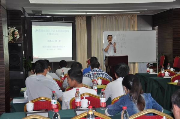 這次培訓主要以創(chuàng )華工控pH自控系統系列產(chǎn)品為主,結合生產(chǎn)工藝,從理論到實(shí)際、系統結構圖到實(shí)物,圍繞如何更好操作和維護設備展開(kāi)講解,主要內容有《玻璃電極的使用和維護》、《pH自控系統電路原理分析》、《pH自控系統故障分析和排除》等。培訓還邀請了著(zhù)名制糖專(zhuān)家—廣西大學(xué)食品工程學(xué)院周少基教授及糖廠(chǎng)pH自控系統第一人—華南理大學(xué)黃揚明博士就《蔗汁澄清與控制》和《可靠性工程與產(chǎn)品研制》等方面內容進(jìn)行了講解。